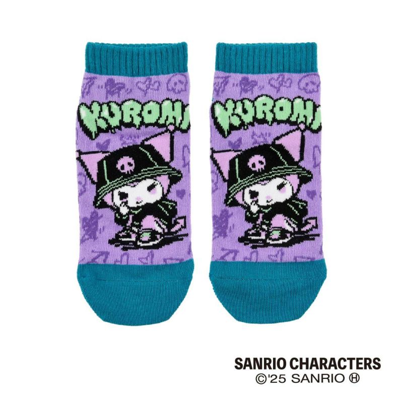 サンリオの人気キャラクター、クロミのくるぶし丈ソックスです。いつものクロミとはひとあじ違う雰囲気が、新鮮で魅力的なデザインです。短め丈なのでコーディネートに取り入れやすい一足です。
