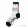 秋冬シーズンでもまだまだ暑い前半に透明感が涼し気なソックス。サイドにあしらった繊細な花柄と大胆に切り替えたボーダーの良い意味でのアンマッチを楽しんでください。