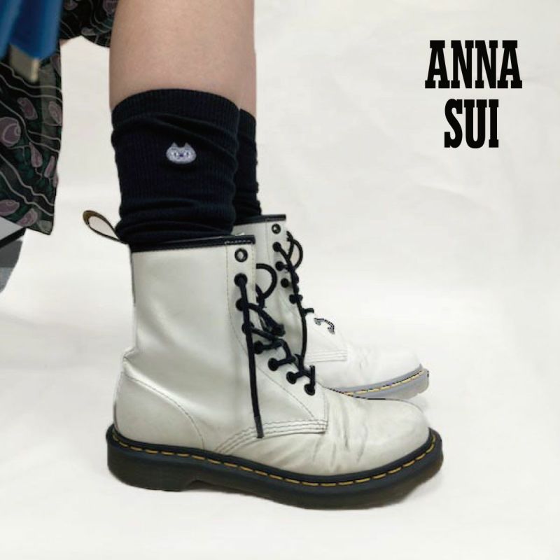 ANNA SUIの人気キャラクターのティティの刺繍をあしらったシンプルなハイソックスは、汎用性抜群です。