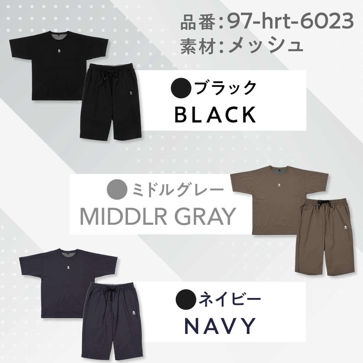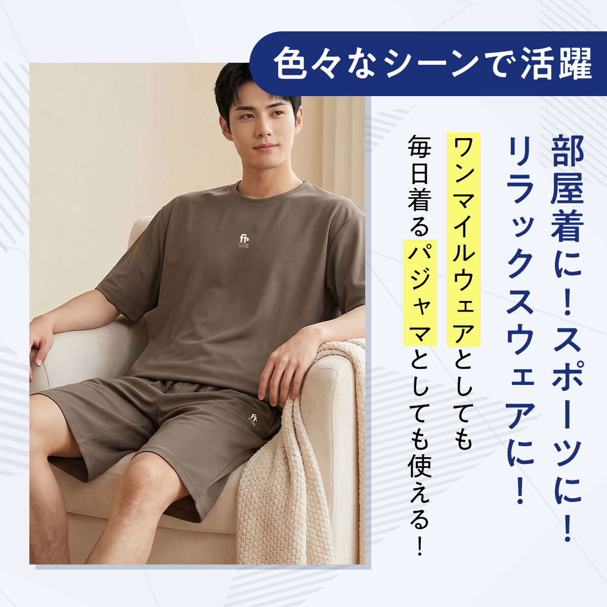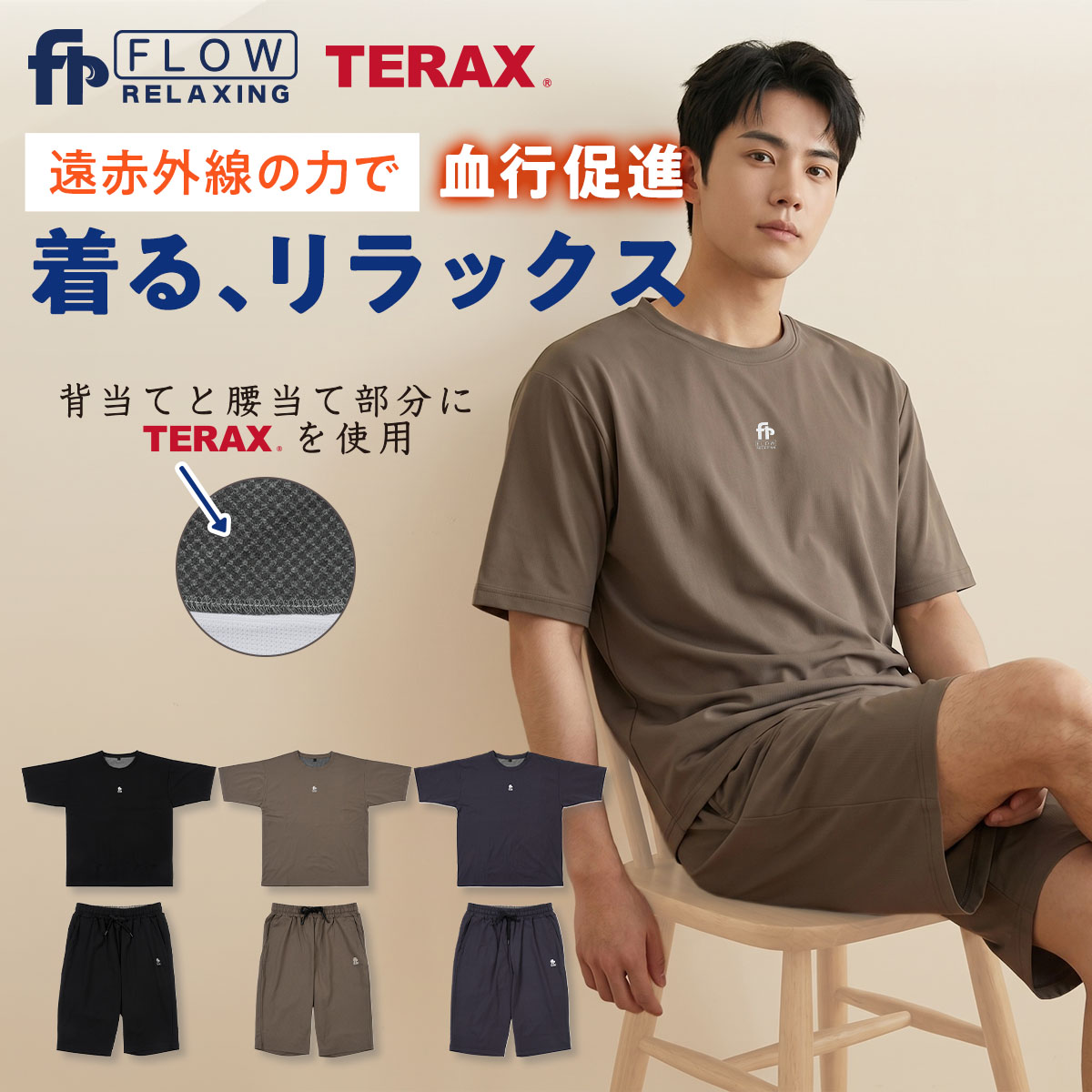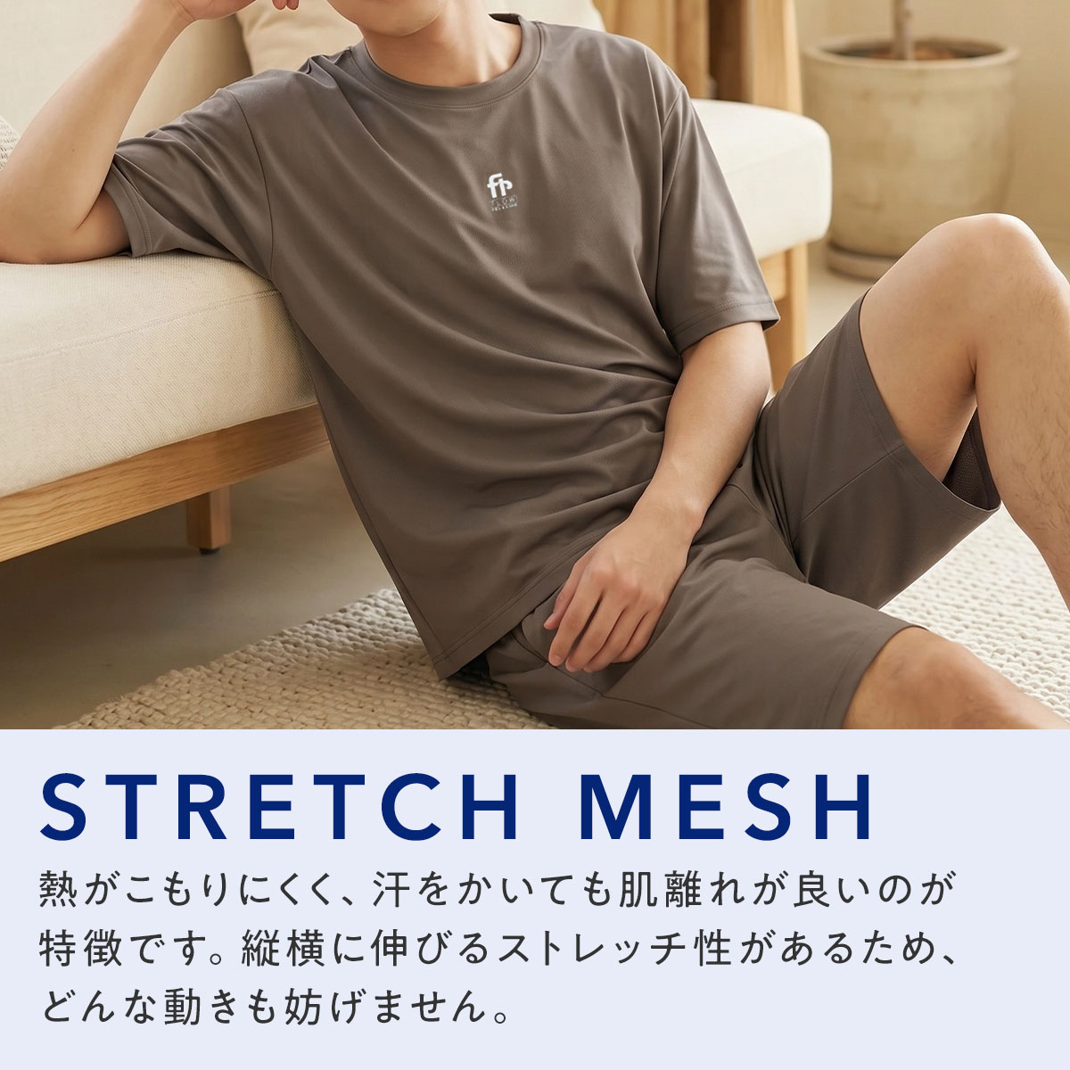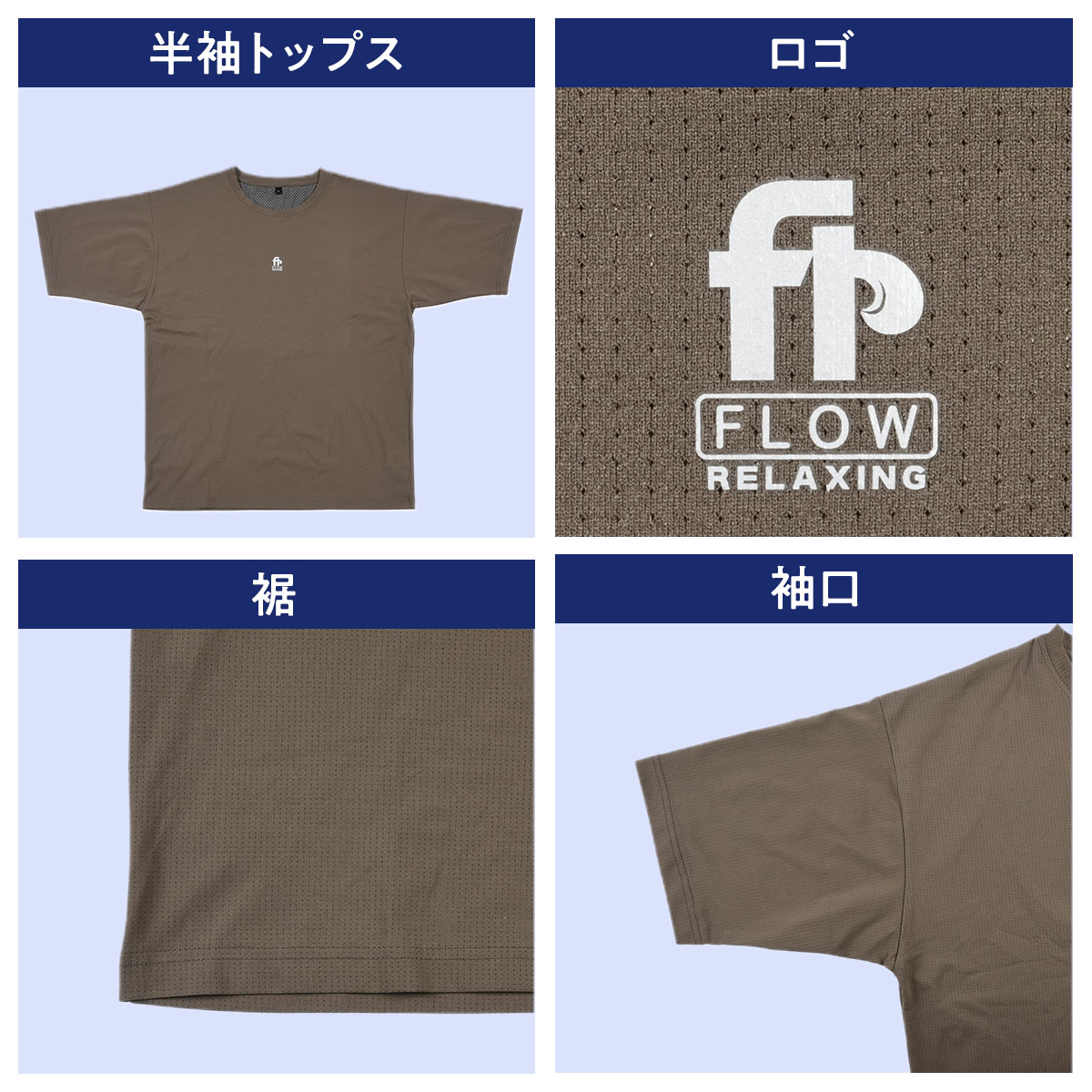 【Flow Relaxing(フローリラクシング)】 ルームウェア 無地 ワンポイント 半袖 ハーフパンツ ストレッチメッシュ (HRT-6023)