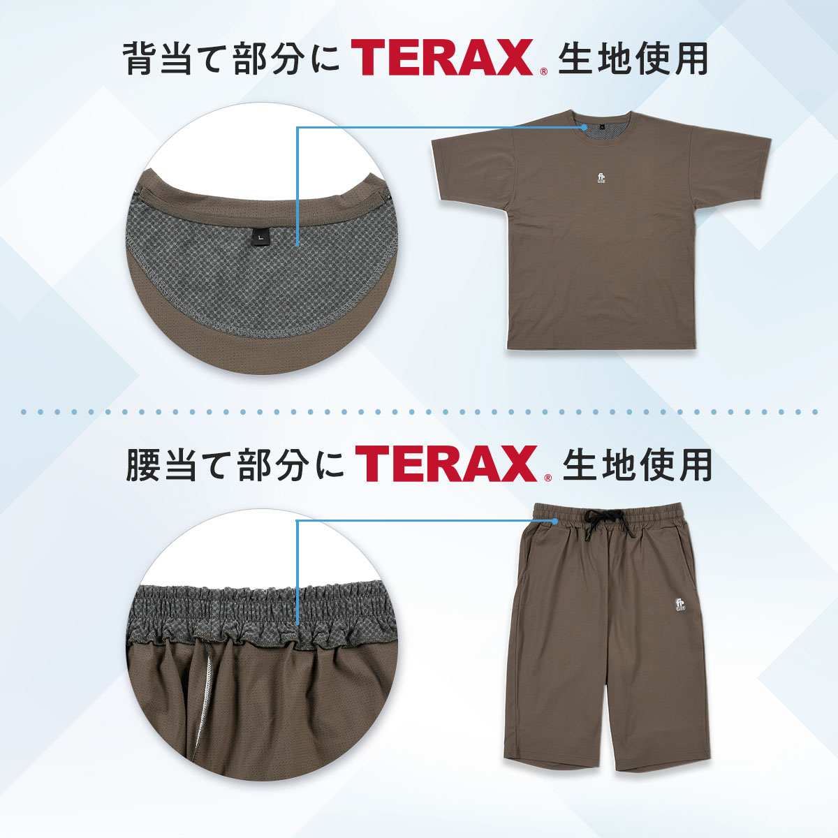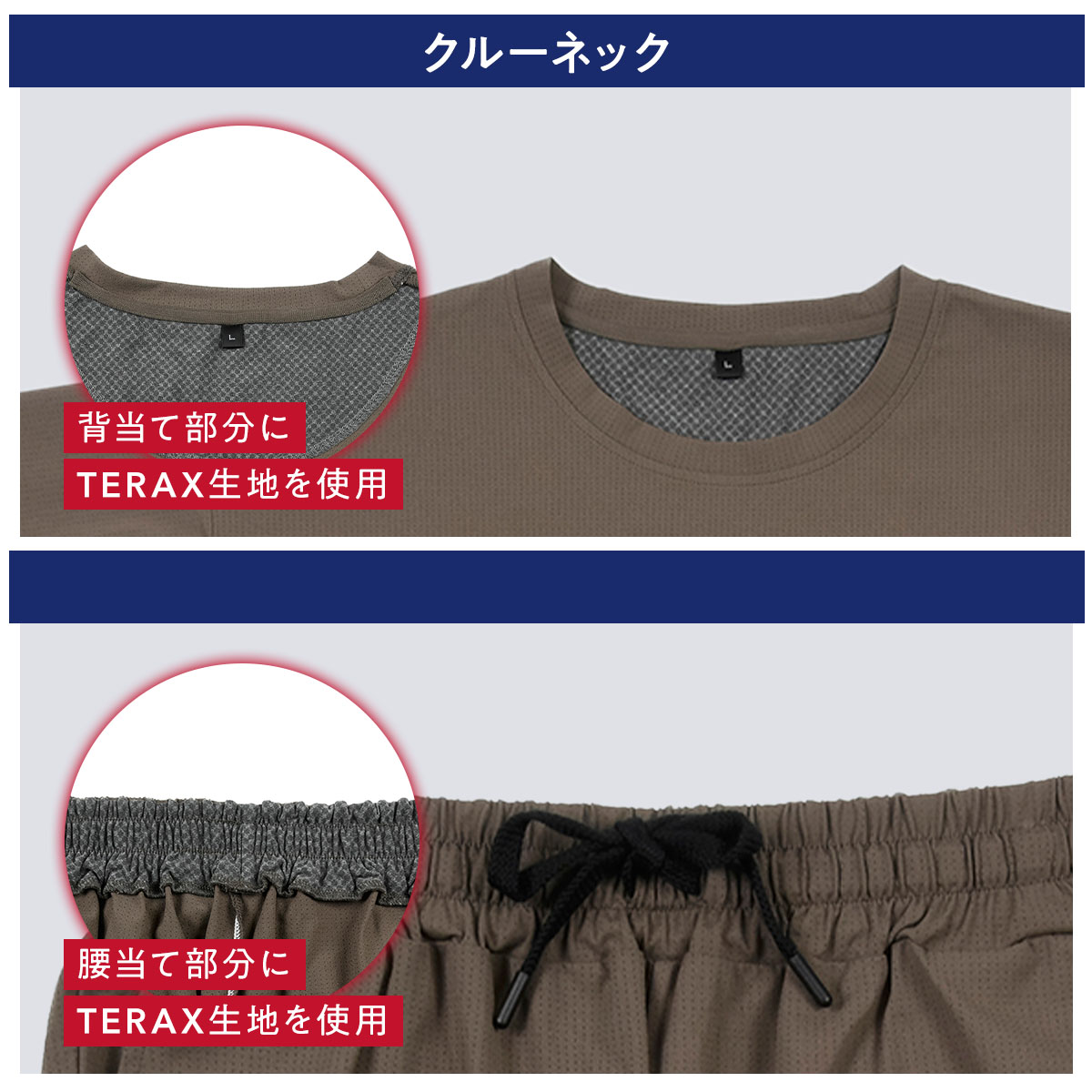 「寝ながら、くつろぎながら、、、」という何気ない日常のひとときを、身体を整える大切な時間へと変えてくれるのが、このFlow Relaxingのメンズストレッチメッシュ上下セットです。最大の特徴は、背中と腰の裏側に施された高機能素材「TERAX」の当て布です。数種類の天然鉱石をブレンドしたこの素材が、身体から放出されるエネルギーを遠赤外線として効率よく活用することで血行を促進していきます。素材には、抜群の通気性を誇るストレッチメッシュ生地を採用しました。汗をかいてもムレにくく、身体の動きに合わせてしなやかに伸びるため、お家でのリラックスタイムはもちろん、就寝時も寝返りを妨げず、ストレスフリーな着心地をキープします。半袖シャツとハーフパンツのセットアップは、ただ着るだけで完結する新しいセルフケア習慣として、忙しい毎日を過ごす方の質の高い休養をサポートします。穏やかなリラックス状態へと導き、明日をより健やかに、自分らしく迎えるための準備を整えてくれる、大人のための特別なウェアです。