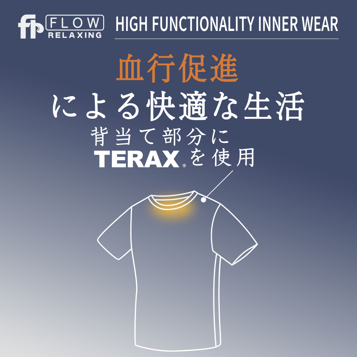 "寝ながら、くつろぎながら、、、" というコンセプトから生まれたFlow Relaxingは、日々の暮らしに寄り添い、身体を心地よいリズムへと導くためのウェアブランドです。このブランドが大切にしているのは、特別な準備を必要としない、日常の中での質の高い休息です。その要となるのが、最先端の技術を駆使した高機能素材「TERAX」の採用です。背中の裏側には、数種類の天然鉱石をブレンドした生地を使用しております。この素材が身体から放たれるエネルギーを遠赤外線として効率よく活用することで、血行を促進してくれます。Vネックのデザインは首元をすっきりと見せ、一枚での着用はもちろん、外出時のインナーとしても幅広く活躍します。身体に馴染む心地よいフィット感により、眠っている間も、リビングでくつろぐ時間も、余計なストレスを感じさせない着心地を実現しました。ただ着るだけで完結するこの新しい習慣は、忙しい毎日を過ごす方の質の高い休養をサポートし、明日をより健やかに、自分らしく迎えるための準備を整えてくれる特別な一着です。