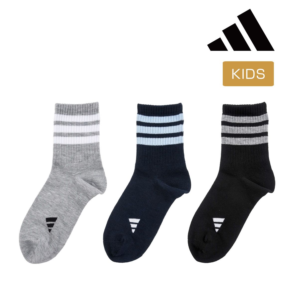 【adidas(アディダス)】3足組 靴下 ワンポイント 3本ライン ロゴ クルー丈 消臭 つま先かかと補強(123-16B7)