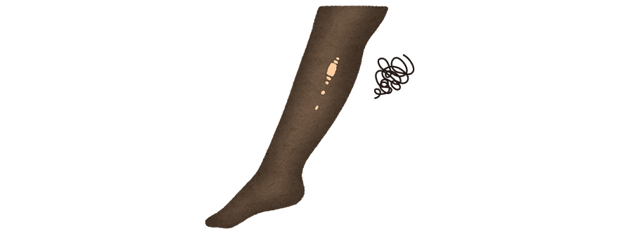 ストッキングの伝線とは、何らかの原因で生地に穴が開いてしまい、上下に裂けることで起こります。