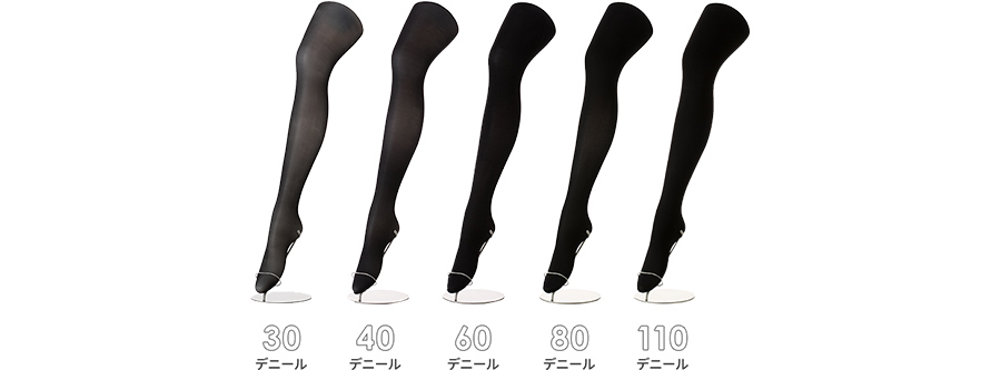 タイツのデニールは、数字が低いほど生地が薄く、数字が高いほど厚くなります。