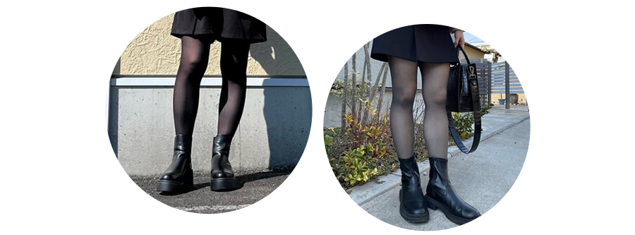 タイツは防寒や保温が目的になるので、冬場などの足元が冷える時期に使うと、足を出すファッションを取り入れておしゃれを楽しめます。
