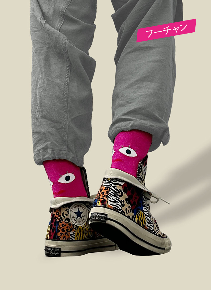 フーチャンの目ヂカラが印象的なキラキラグリッターのソックス