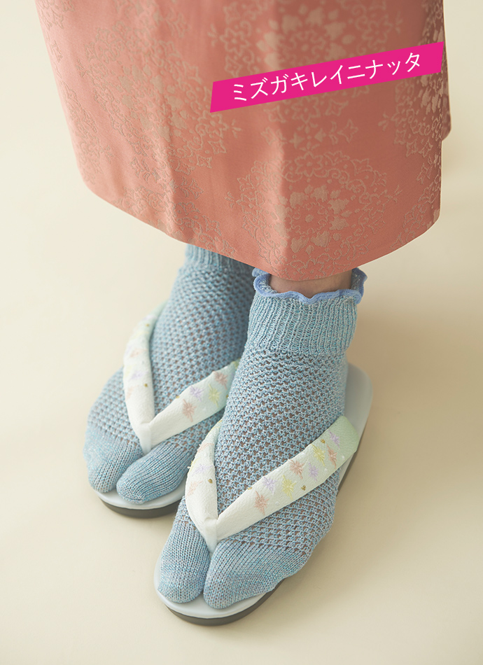 2種のラメ糸を使用し、水が通り抜けてキラキラと輝く様をイメージ