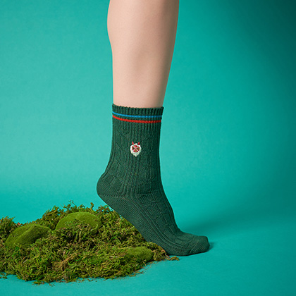 ピスネームをソックスにあしらっています