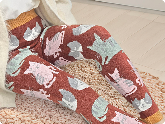 毎年楽しみにされている方も多いのではないでしょうか?今年も柄を新しくしたモコパンの登場です。履くだけでとっても暖かく可愛さ溢れるモコパンをぜひご覧ください。 動物柄が好きな方へ パンダ柄がキュートなモコパン 大きなパンダが特徴ですがグレーベースなので落ち着いて履けるのが魅力。グレーのスウェットと合わせても可愛いです。 癒しの犬柄がポイントのモコパン 絶妙な表情ワンちゃんがお家時間の癒しになります。犬好きさんは必見です。 いろんな猫柄が可愛いモコパン 様々な猫柄が楽しめ、猫好きさんへおすすめ!元気がもらえそうな色味もおすすめポイントです。 ノルディック調のうさぎ柄モコパン ノルディック柄が可愛く所々にうさぎがのぞいています。一見派手な柄に見えますが、濃い色目なので案外合わせやすいのもポイントです。 落ち着いた柄が好きな方へ パステルカラーが可愛いモコパン パステルイエローとピンクのおかげで着るだけでハッピーな気分になれるフラワー柄。リラックスタイムにピッタリです。 可愛らしい街をイメージしたモコパン 家々や木、街をモチーフにしたポップな柄です。 モコパン一覧へ