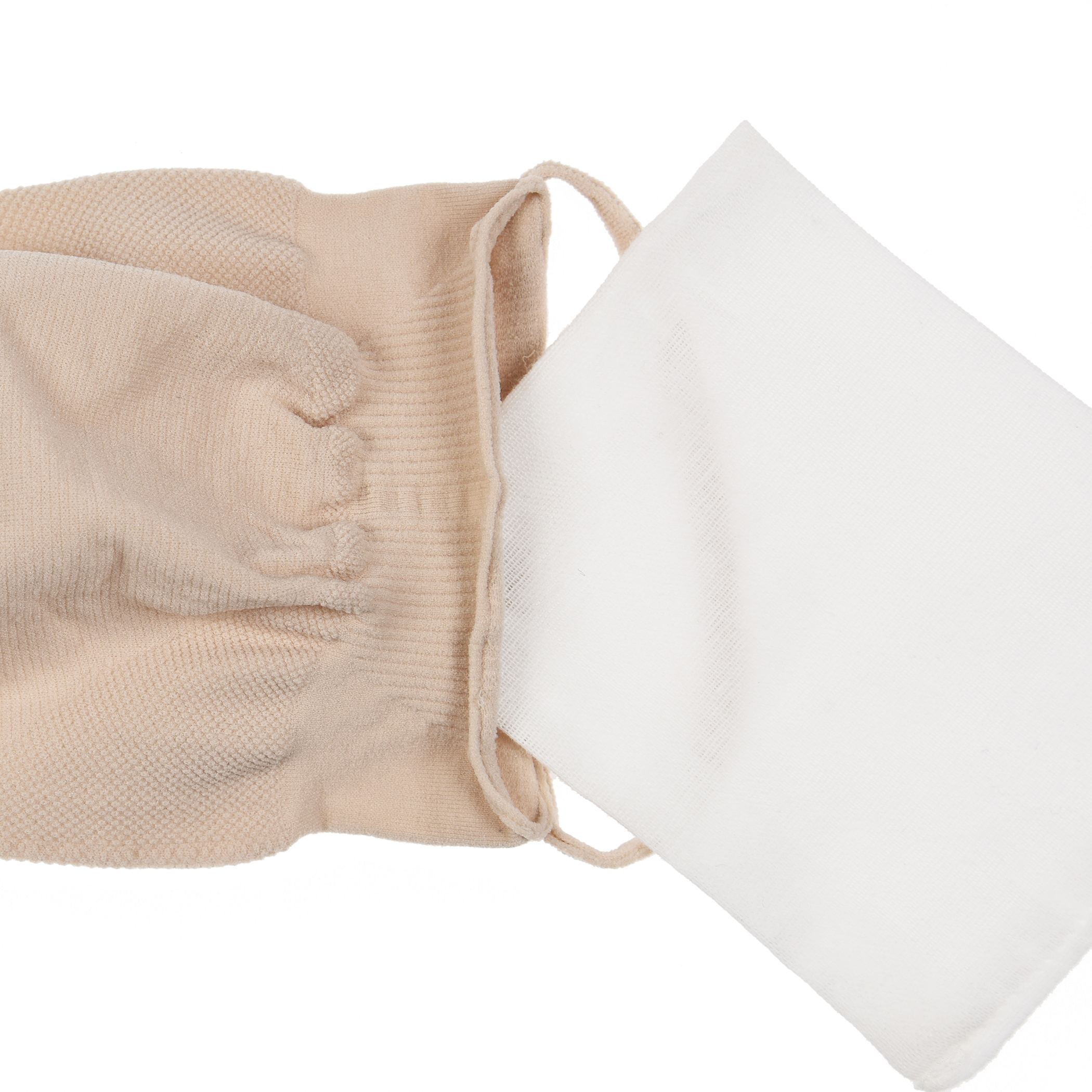 - 筒形状に編まれているので間にハンカチやガーゼを挟んで