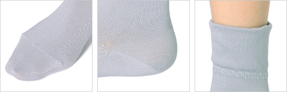 「足口ゆったり クルー丈ソックス」 - ・履き口の裏側に3か所だけゴムを挿入する事で、ずり落ちにくいのにゆったり快適なはき心地
