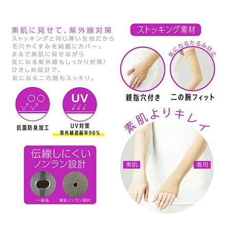 満足 レディース アームカバー ひきしめ設計 (親指穴付き)