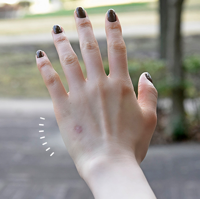 手の甲の左側に傷跡がありますが