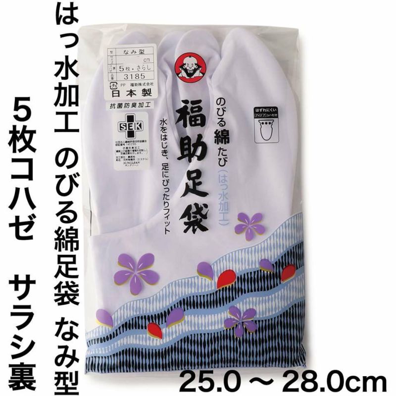 他の画像を見る カートに入れる お気に入りに登録する しわや縮みが少なくノーアイロンでも着用できる 福助足袋 新木棉(形状保持) 5枚コハゼ サラシ裏 なみ型 (21.0cm-24.5cm) ゆうパケットOK 販売価格 ¥ 4,070 税込