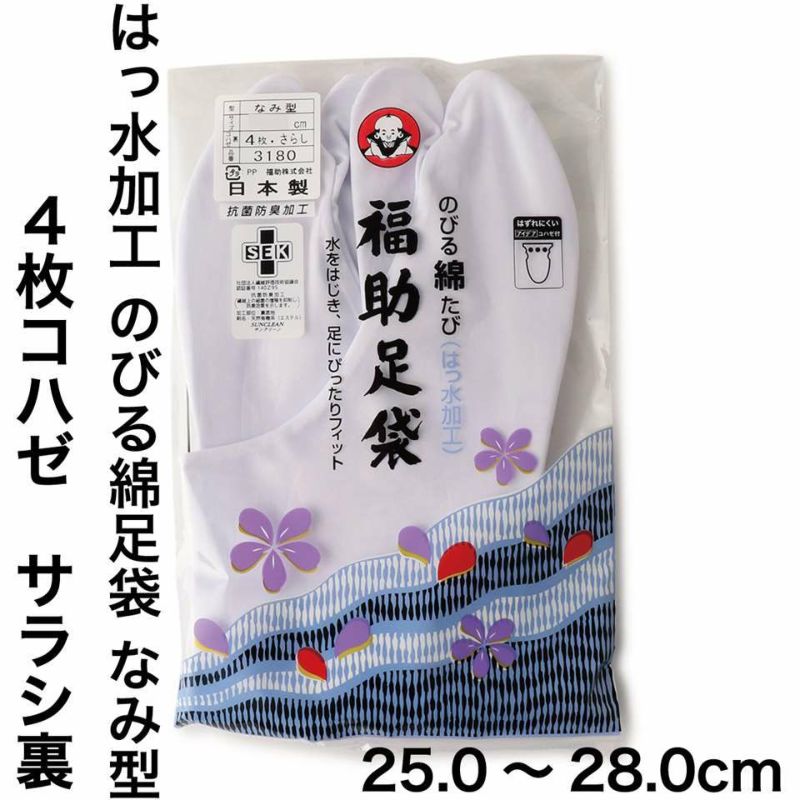 他の画像を見る カートに入れる お気に入りに登録する 伸縮性にすぐれた綿足袋 福助足袋 のびる綿足袋(はっ水加工) 4枚コハゼ サラシ裏 なみ型 (21.0cm-24.5cm) ゆうパケットOK 販売価格 ¥ 3,960 税込