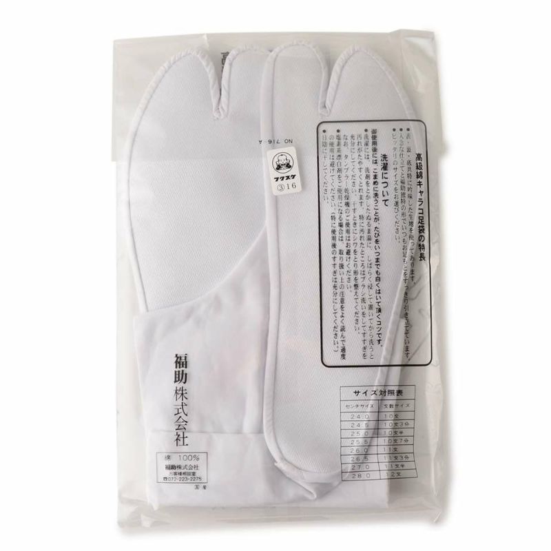 他の画像を見る カートに入れる お気に入りに登録する 上質キャラコを使い入念な仕立てと型で仕上げた実用品 福助足袋 上級 綿キャラコ 4枚コハゼ サラシ裏 普通型 (22.0cm-24.5cm) ゆうパケットOK 販売価格 ¥ 2,200 税込