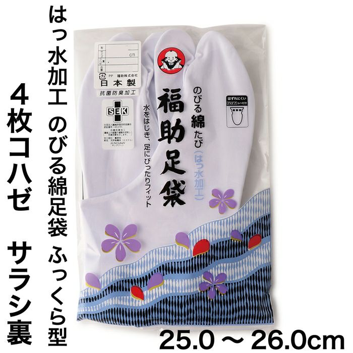 他の画像を見る カートに入れる お気に入りに登録する 伸縮性にすぐれた綿足袋 福助足袋 のびる綿足袋(はっ水加工) 4枚コハゼ サラシ裏 なみ型 (21.0cm-24.5cm) ゆうパケットOK 販売価格 ¥ 3,960 税込